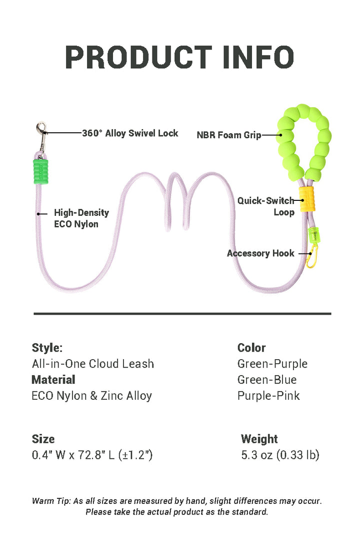 Cloud-Comfort Leash - Color-Block P-Rope for Hands-Free Walking