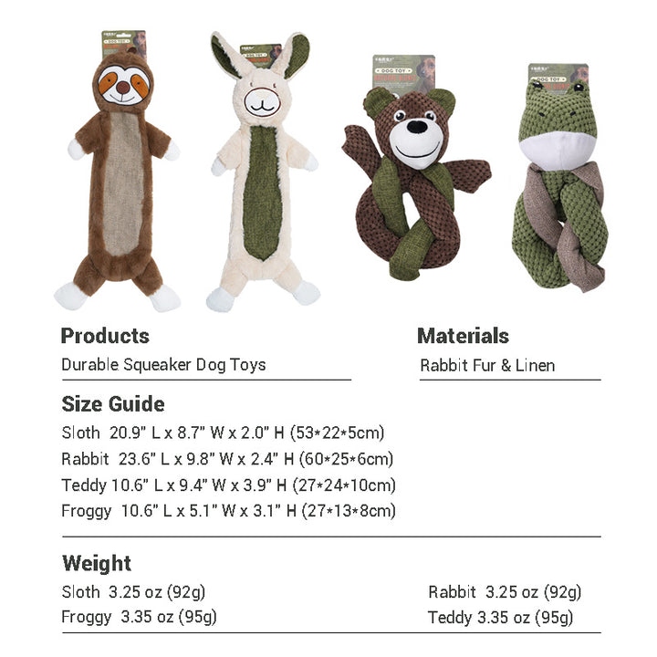 This fun-sounding toy is crafted for chew-loving pups! Made with durable rabbit-fur fabric and eco-friendly materials, it satisfies your dog's natural hunting instincts, provides great exercise, and keeps them happily entertained. Its cute design is just the bonus!