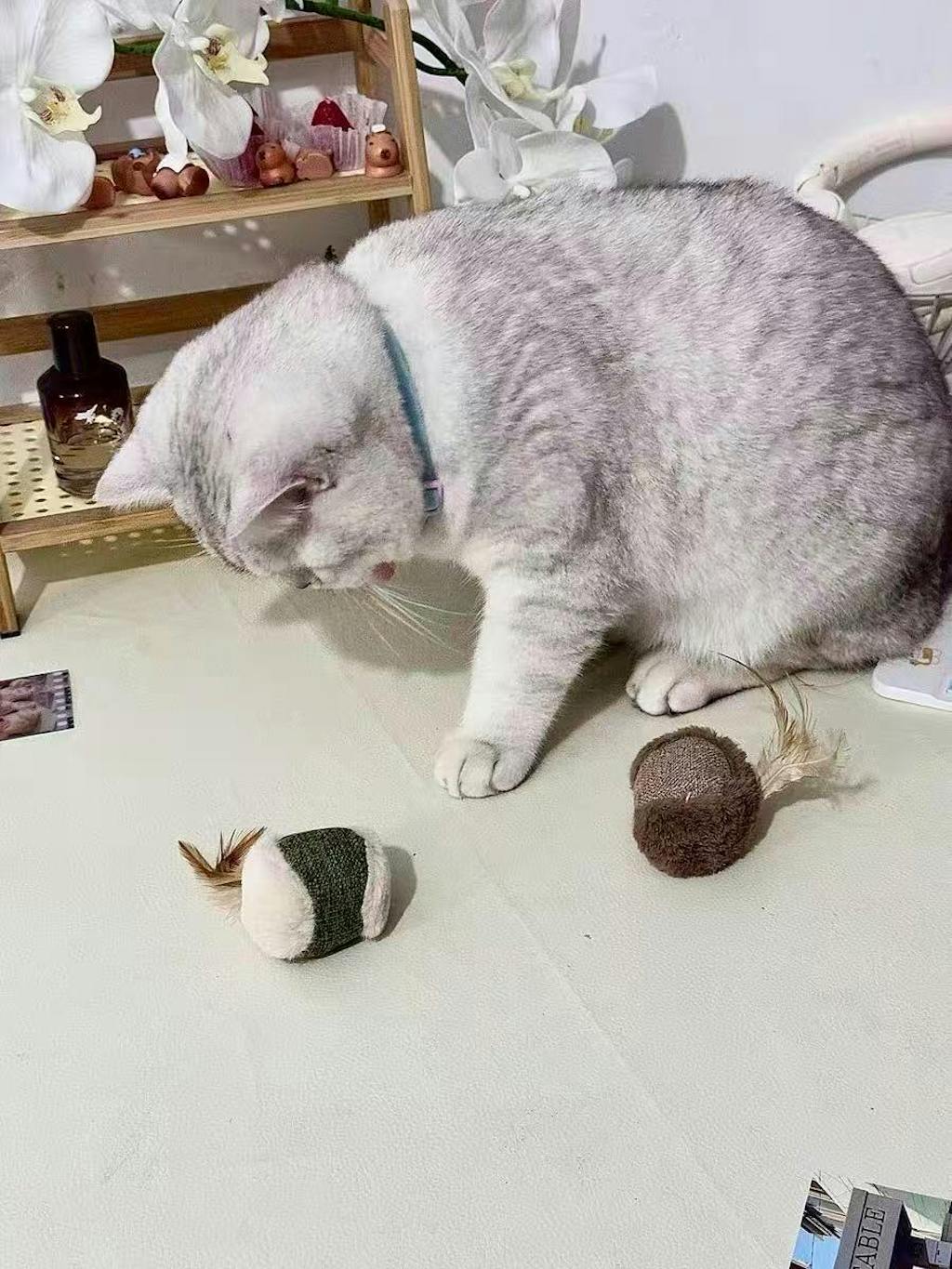 Made from natural silvervine wood, premium catnip, soft cotton-linen, and fluffy feathers, this toy is durable, eco-friendly, and delightfully cute. Designed for self-play or bonding time, it helps cats relieve stress, clean teeth, and stay active — all while looking adorable!