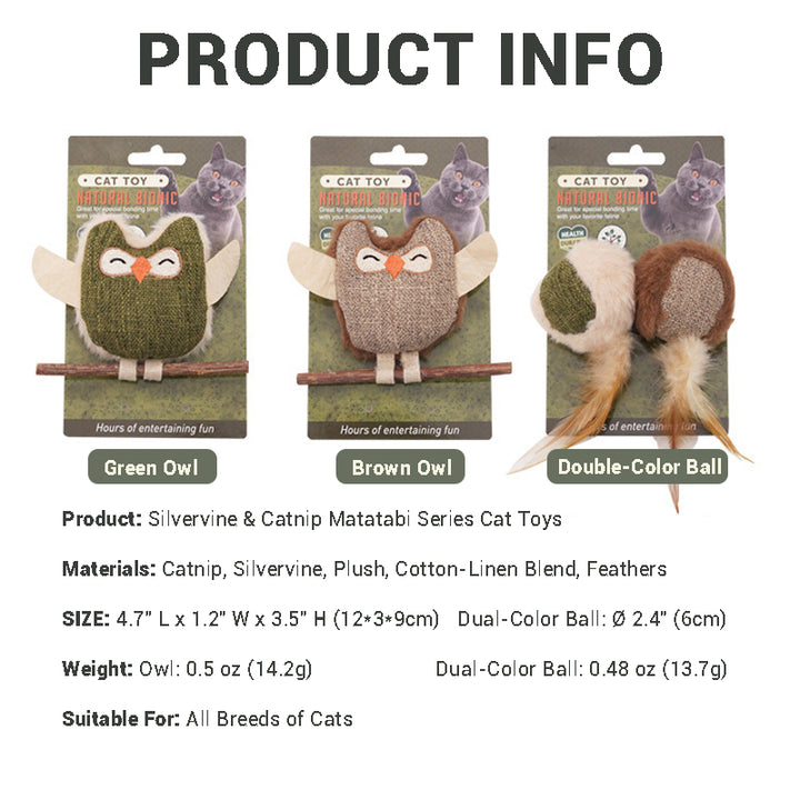 This multi-functional toy is a texture-rich adventure for your cat! Combining plush, linen, and a irresistible blend of catnip & silvervine, it satisfies natural instincts—encouraging play, reducing anxiety, and providing comforting companionship. All made with tough, eco-friendly materials for lasting fun.