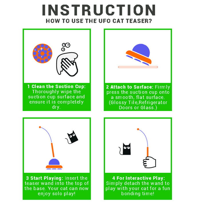 This innovative UFO teaser toy features a super-strong suction cup base that securely attaches to tiles, fridge doors, glass, and smooth wooden floors, giving you hands-free play! Its high-tension steel wire and eye-catching feathers bounce and flutter with every tap, keeping your cat entertained for hours while satisfying their natural pouncing instincts. Perfect for solo play or interactive bonding time.